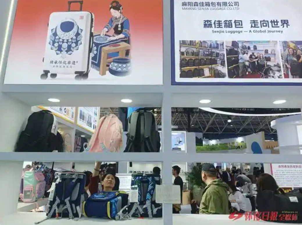怀化箱包融入麻阳苗绣等地域文化元素,深受消费者青睐。(怀化日报全媒体记者 谌孙存 通讯员 王馨悦 摄)