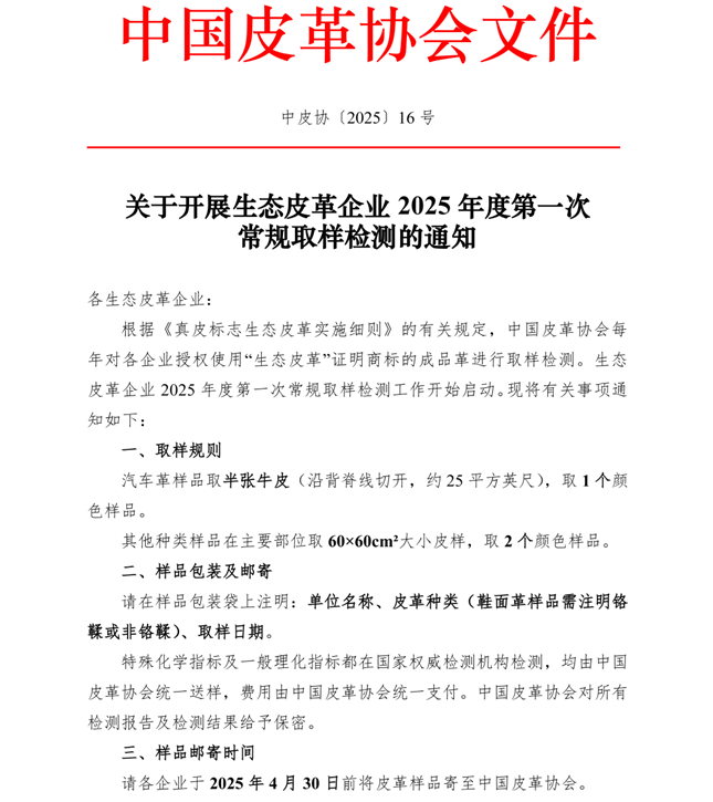 关于 2025 年生态皮革企业三年资格重新确认的通知