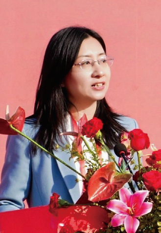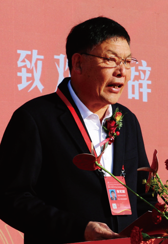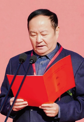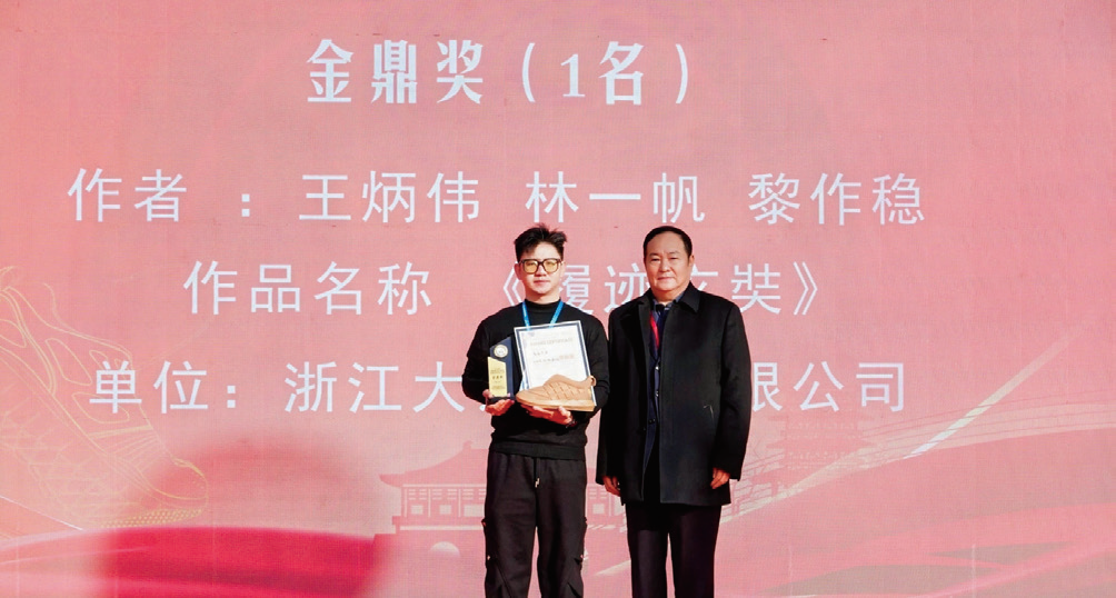 张西文为“首届中国布鞋之都·偃师杯”鞋类创新设计大赛金鼎奖获奖者颁奖。