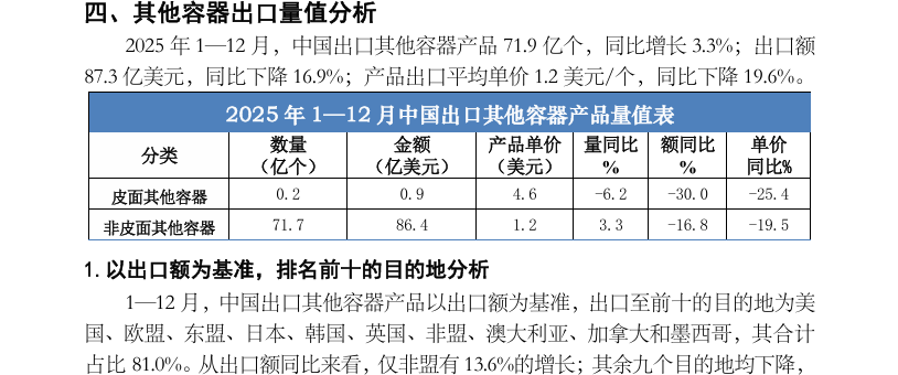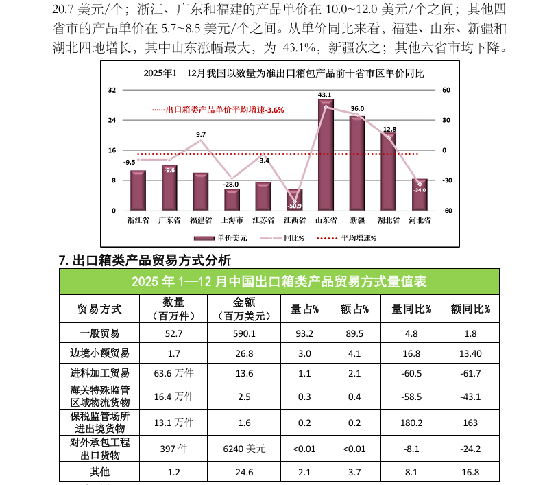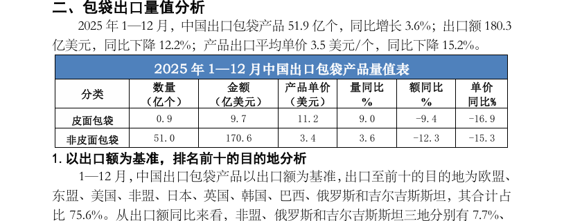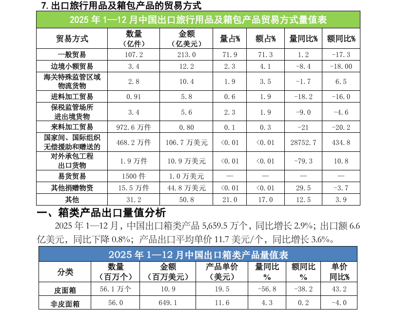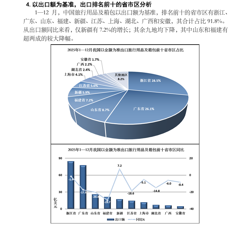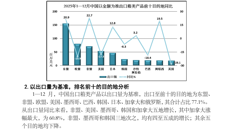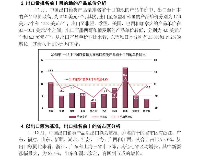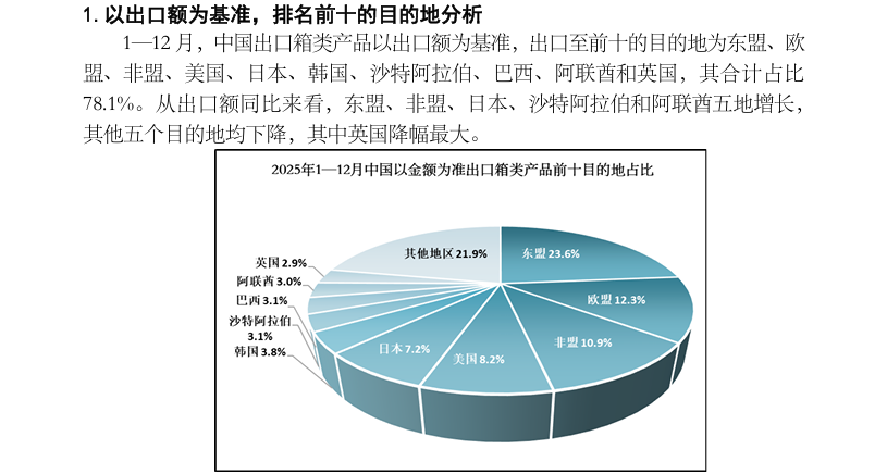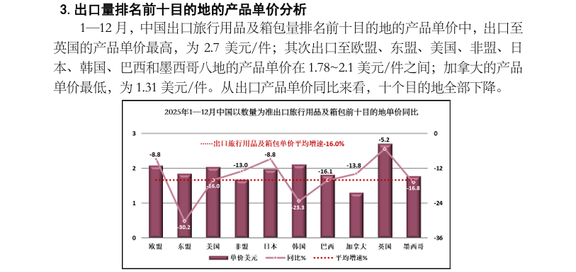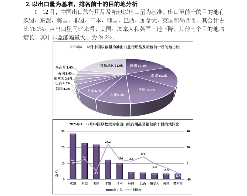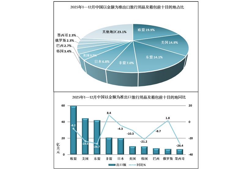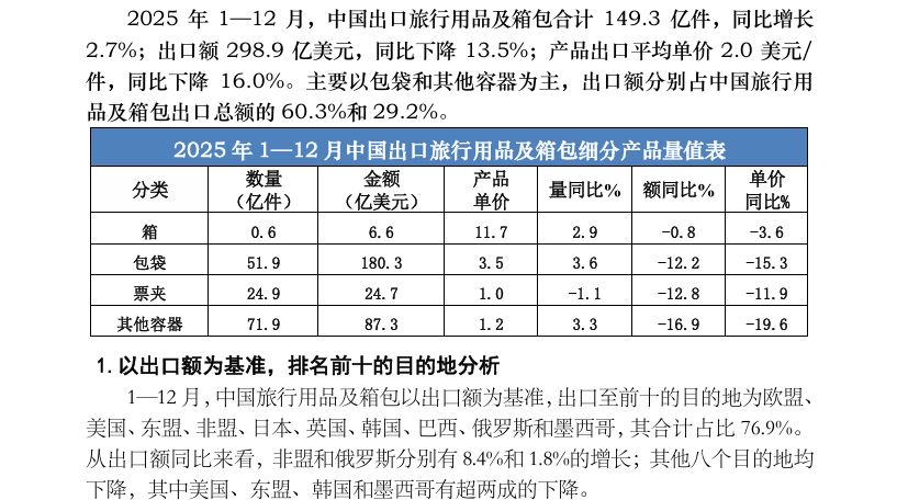 2025 年1—12月中国出口旅行用品及箱包产品数据分析