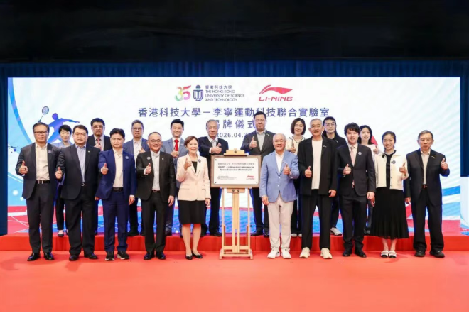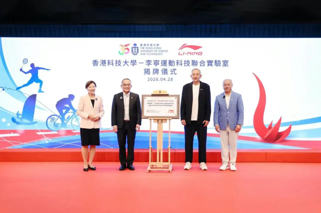 4月28日,“香港科技大学-李宁运动科技联合实验室”揭牌仪式在香港科技大学举行,本次活动标志着李宁集团与香港科技大学正式开启战略合作。双方将重点围绕运动装备设计及材料创新、运动科学领域人机工程等方向,构建长期可持续的产学研协同创新平台,促进运动科学研究成果的应用与转化。香港科技大学校长叶玉如教授、副校长(研究及发展)郑光廷教授、副校长(大学拓展)吴宏伟教授、副校长(发展)邝家陞工程师,以及李宁品牌创始人、集团董事长李宁先生,李宁集团副总裁、首席运动官洪玉儒先生等嘉宾出席活动,并为运动科技联合实验室揭牌。