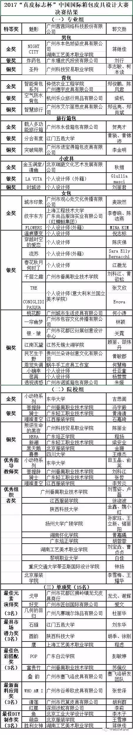 7月19日,2017“真皮标志杯”中国国际箱包皮具设计大赛决赛在广州花都区狮岭镇评选结束,7月24日-7月31日,组委会对大赛评选结果在中国皮革网等媒体进行了公示。