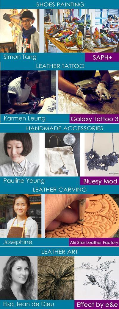 五位艺术工作者,将会在三楼三 FG 的展览厅大堂示范以皮革为主的工艺创作,他们包括:SIMON TANG (www.facebook.com/workshopsaph)。Simon 以“手工+时尚”的概念,即席示范如何在男装皮鞋上以人手绘制独一无二的颜色及图案。每对鞋的颜色及图案全部是由设计师亲自手绘完成,绝对有别于将颜色及图案采用喷漆及机器印刷的方法。KARMEN LEUNG (http://www.galaxytattoo3.com/gallery_Karmen.html)。艺术系毕业的 KARMEN 三年前成为纹身艺术家,现职于 Galaxy Tattoo 3,由于她有化妆及人体彩绘的背景,KARMEN 认为皮肤是最佳的创作媒体。今次 KARMEN 则会以另一种媒体 -- 皮革,来绘制一幅作品。PAULINE YEUNG (http://www.bluesymod.blogspot.hk/)。由从事 PR,到开始网店,再设立 Bluesy Mod 店铺的 Pauline,擅长用针线、旧钮扣、皮革与布料,缝制 vintage 味道十足的饰品系列,深受年轻上班一族爱戴。Pauline 会即场示范制作她的产品,再搭配不同的衣着。阿里(84.17, 0.42, 0.50%)皮艺 (https://www.facebook.com/AlriStarLeatherFactory)。本地近年吹起一遍手工皮艺风,而阿里皮艺,对于本地皮革爱好者绝不陌生。今次他们的设计师,将会现场雕制皮革艺术品,让参观人士了解皮革的无限可能性,并让不同国家的人士一睹中国文化如何显现在皮革艺术品上。ELSA JEAN DE DIEU (www.effect.com.hk)。Elsa 曾工作于法国 Atelier Lucien Tourtoulou 工作,现于香港开始 Effect 室内设计工作室,其客户名单包括国际时装品牌 Gallery Lafayette、Chanel 等,而 LVMH 的 Delphine Arnaud 及摩纳哥公主亦曾找她合作。ELSA 擅长以独特材料配上高尚设计为客人打造室内空间,而在今次展览,她将会以皮革,手工制造及雕出一件艺术作品。