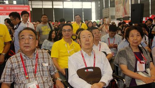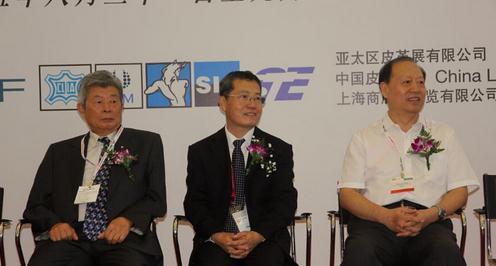 中国轻工业联合会副会长兼秘书长王世成(右一)世界台商皮革业协会创会会长杨正(左一)