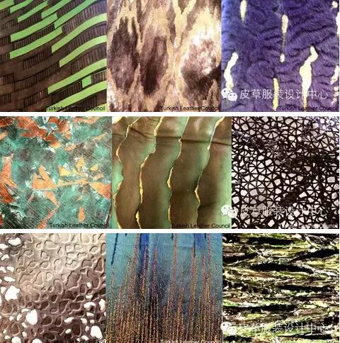 2016秋冬趋势中的皮革变得更加柔软,前几季的虹彩色和全息处理变得更加柔和、低调和奢华,压花工艺或激光蚀刻添加纹理。这也适用于金属光泽涂层。我们发现,金属光泽涂层从高光泽和镜面处理效果演变为柔软精细的起皱、哑光或珠光效果。近期秋冬季秀场流行使用绵羊革,继续精进的技术改良了皮革加工、涂层或表面处理方式,诸多制革厂推出带有装饰性华丽背面的绵羊革、多毛兽皮和皮草。