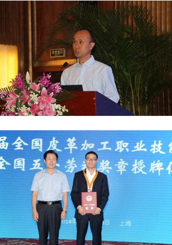 9月2日上午,在中国皮革协会七届四次理事扩大会议上,中国财贸轻纺烟草工会的领导宣读了《中华全国总工会关于授予获得2013年全国行业职业技能竞赛各工种第一名选手全国五一劳动奖章的批复》。