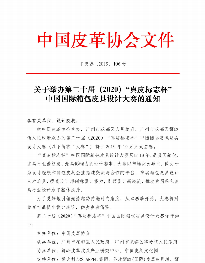 关于举办第二十届(2020)“真皮标志杯”中国国际箱包皮具设计大赛的通知