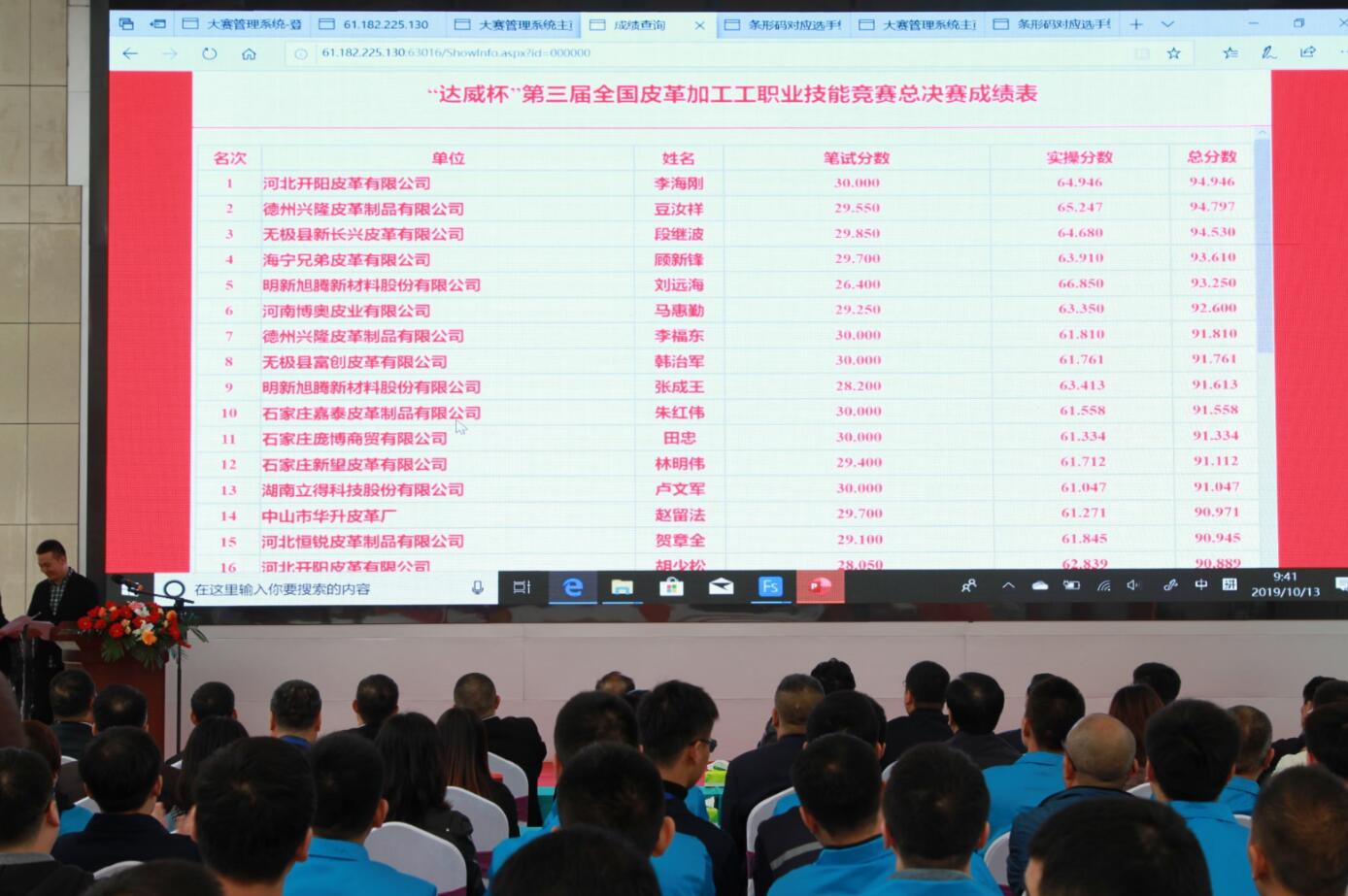 决赛前三名选手分别是河北开阳皮革有限公司李海刚、德州兴隆皮革制品有限公司豆汝祥、无极县新长兴皮革有限公司段继波。