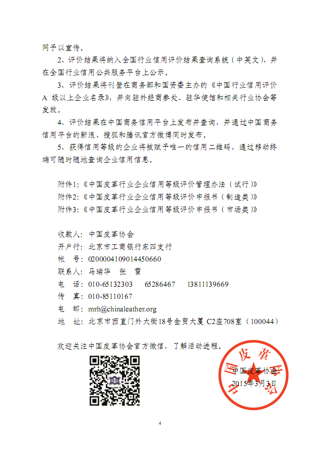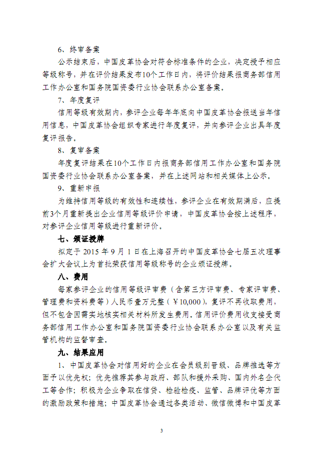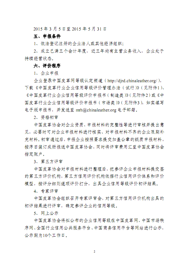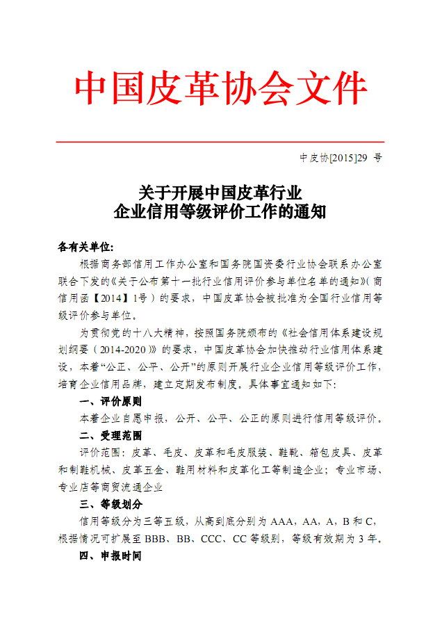 关于开展2015年中国皮革行业企业信用等级评价工作的通知