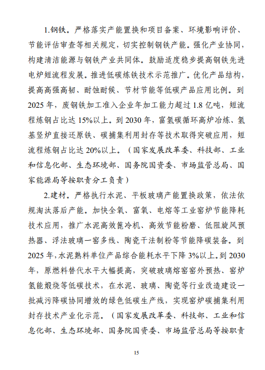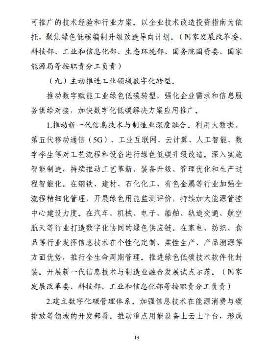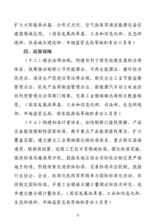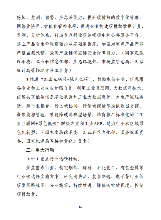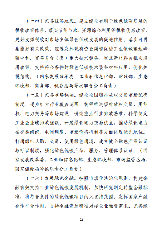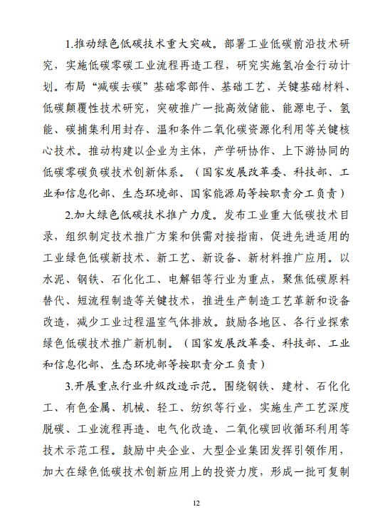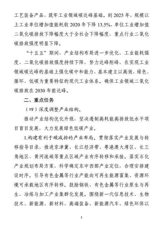 原标题:工业和信息化部 国家发展改革委 生态环境部关于印发工业领域碳达峰实施方案的通知