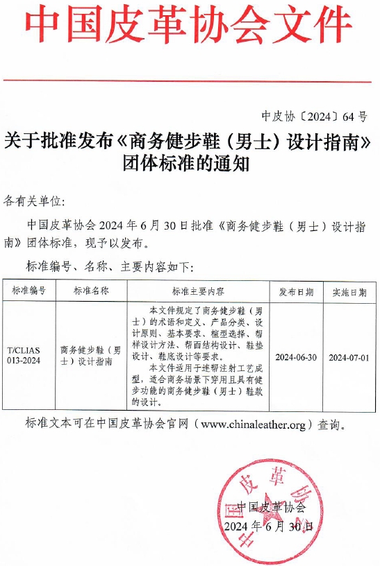 关于批准发布《商务健步鞋(男士)设计指南》团体标准的通知