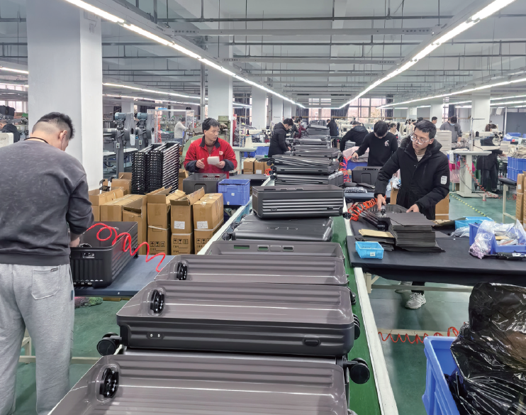 “卡拉扬”生产车间,工人按照旅行箱包标准组织生产