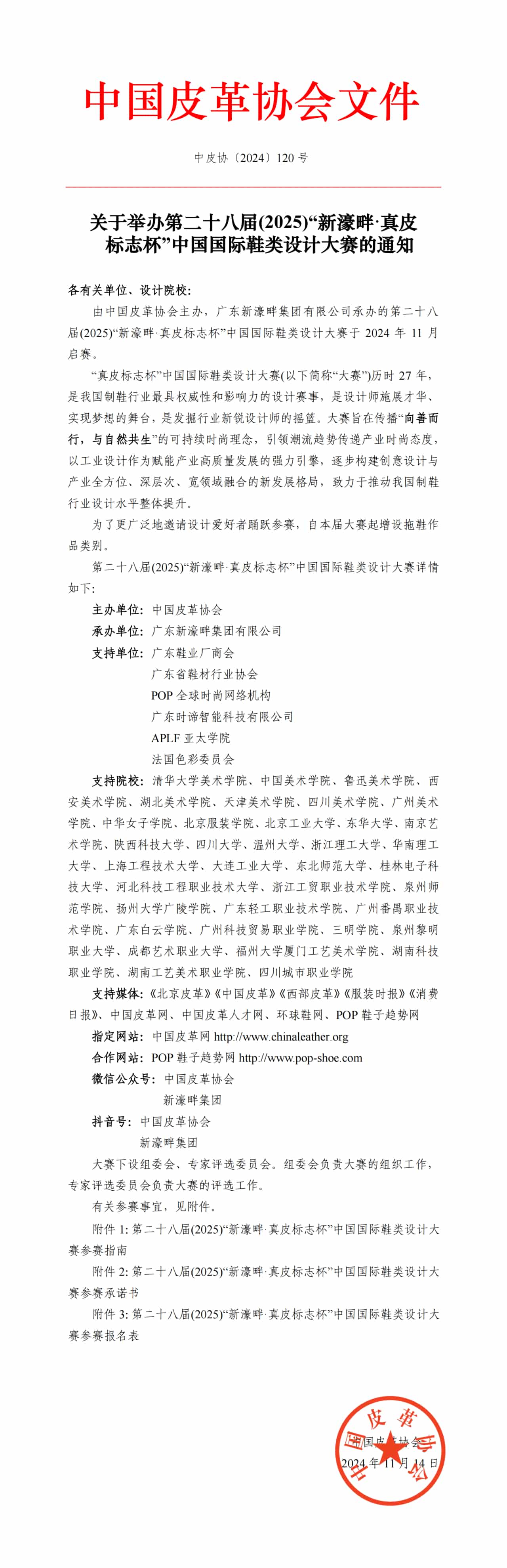 关于举办第二十八届(2025)“新濠畔·真皮标志杯”中国国际鞋类设计大赛的通知