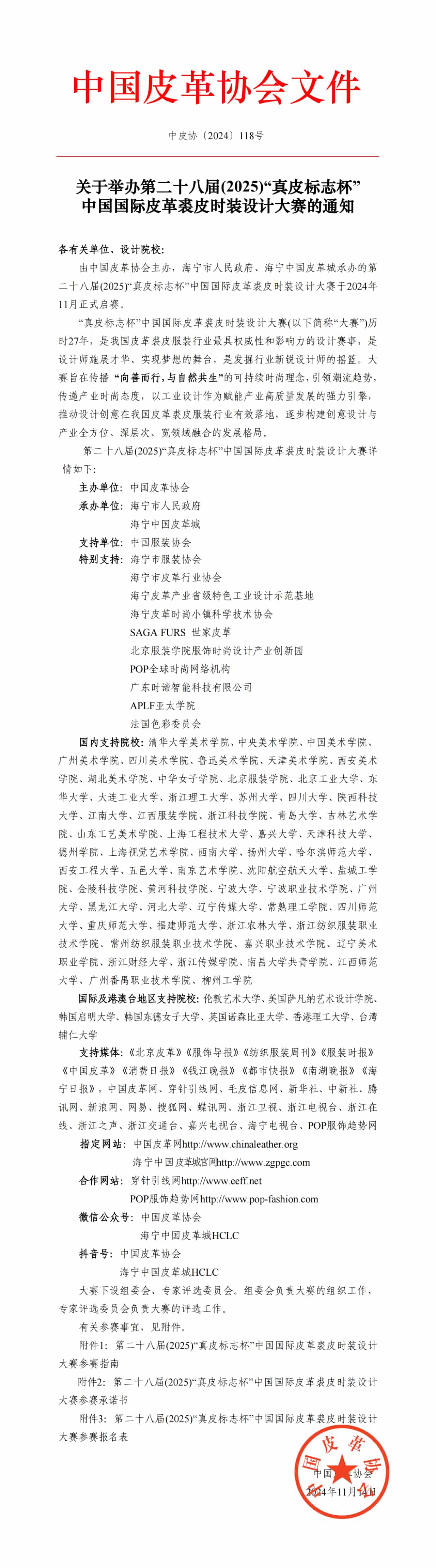 关于举办第二十八届(2025)“真皮标志杯’中国国际皮革裘皮时装设计大赛的通知