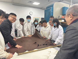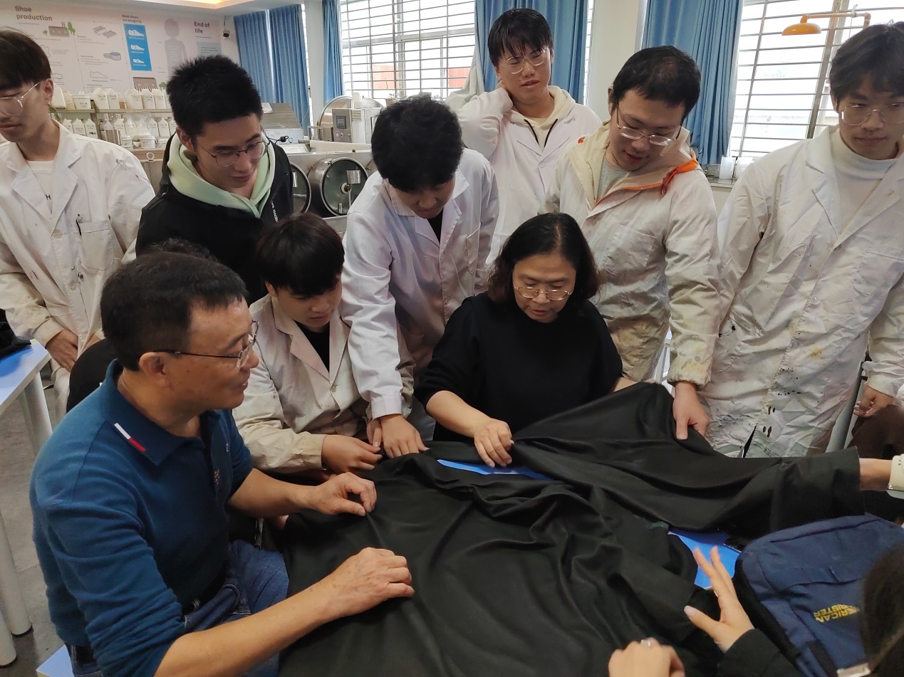“皮革水场技术交流周”以市场最新清洁化制革技术之无铬鞣绵羊皮服装革的设计与制作为主要内容,由校内外导师联合指导学生们基于浸酸绵羊皮进行鞣制、湿整饰工艺的设计与实施。期间,吴仲蓬经理还讲解了目前市场上的系列无铬鞣剂及其鞣制后皮革的特点。“皮革涂饰技术交流周”以无铬鞣服装革涂饰工艺的设计,全粒面黄牛鞋面革、双色黄牛油蜡鞋面革、紫红色水晶革等的涂饰为主要内容,由校内外导师联合指导学生们对无铬鞣绵羊皮服装革等进行了涂饰工艺的设计与实施,并进行了山羊鞋面革涂饰工艺的DIY设计与实施。期间,王鑫经理和陈碧云经理还就当前主流的皮革产品的涂饰技术要求进行了悉心讲授。在交流周后期,以组为单位就交流周的全部内容进行了汇报与深入讨论,特别是不同类型的皮革涂饰工艺的设计、过程中遇到的问题及对应的解决方法。另外,罗建勋教授就轻化工程智慧实验室和轻化工程专业的发展和现状进行了详细介绍,就与德赛尔新材料科技有限公司、STAHL公司、PieLcolor公司的进一步深度合作进行了深入的交流,并代表轻化工程系赠送了红船模型和专业文创产品。