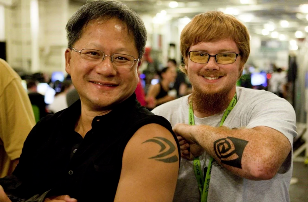 不过,作为一位严谨又理性的科技企业家,黄仁勋却在左手臂上拥有一个非常特别的刺青,NVIDIA的公司Logo。据悉,这是为了纪念公司股价首次突破100美元。