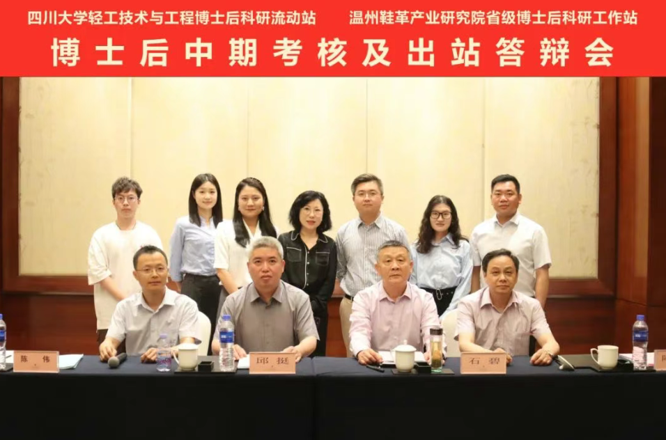 5月17日上午,四川大学轻工技术与工程博士后科研流动站与温州鞋革产业研究院省级博士后科研工作站联合培养博士后彭良琼中期考核及陈杰出站答辩会在温州顺利召开。