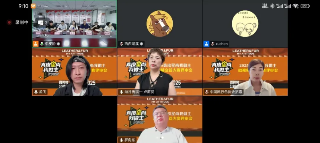 2025年6月28日,由中国皮革协会、北京《瑞丽》杂志社有限公司、兴业皮革科技股份有限公司主办,国际毛皮协会、宏兴汽车皮革(福建)发展有限公司、河北省皮革产业技术创新战略联盟协办的2025真皮星尚我做主微视频公益大赛评审会以线上和线下结合的形式召开。中国皮革协会秘书长张燕,副秘书长黄彦杰、路华等领导出席会议。