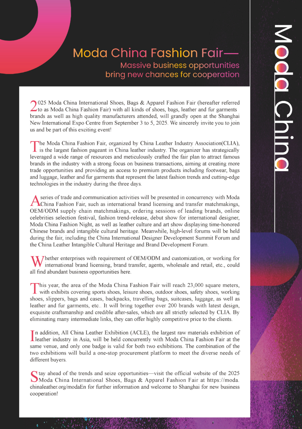 2025 Moda China International Shoes, Bags and Apparel Fashion Fair Invitation For Buyers