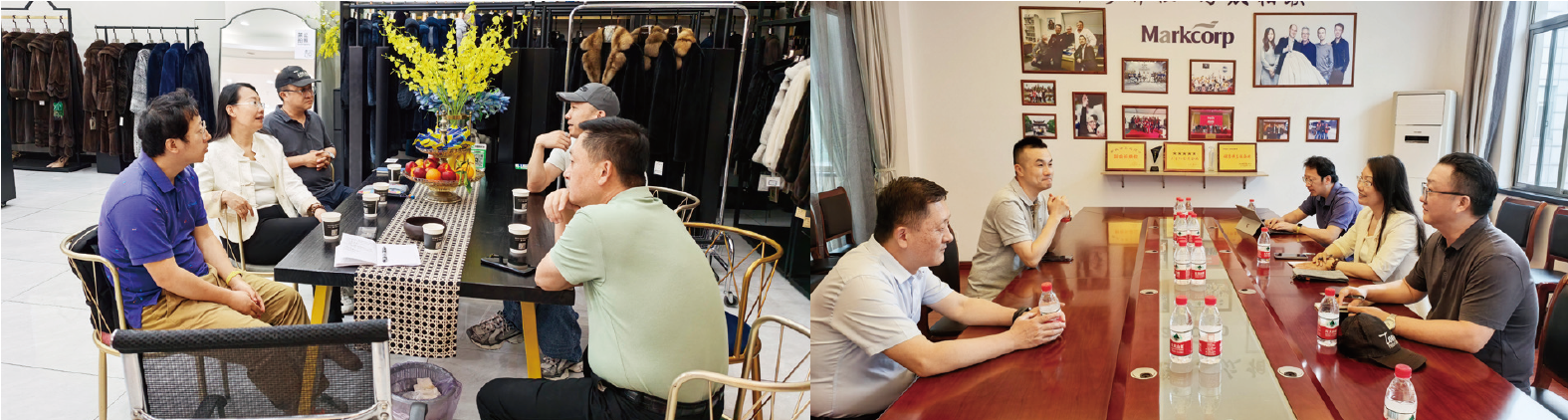 调研期间,调研组实地走访欧菲亚皮草、锦联贸易、欧意毛皮、中皮在线、安盛皮草、黑翼服饰等企业,深入了解生产运营及设计研发情况,与企业负责人就品牌推广策略、市场拓展路径等具体问题交换意见。