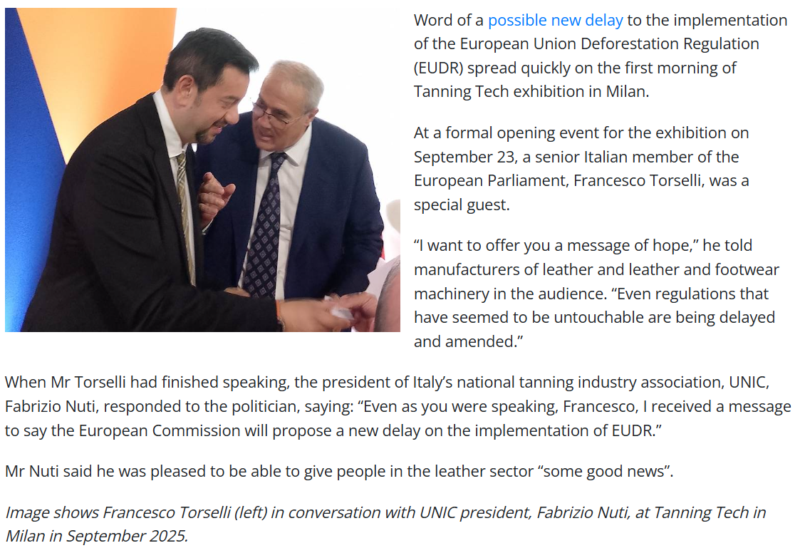 UNIC president tips Tanning Tech audience off about new EUDR delay