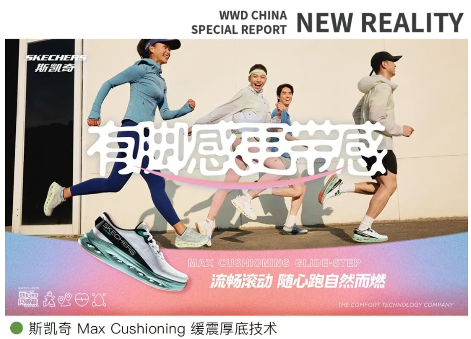 以鞋履为例,消费者变得更加谨慎和理智,正在更倾向于为产品背后的科技价值买单。同时,消费者回归对舒适性的本质需求,通过“去标签化”设计传递松弛感,表达“拒绝内卷”的生活态度。鞋履已成为当代青年表达自我、连接社群的核心媒介。斯凯奇品牌代表对 WWD CHINA 表示:“运动鞋服赛道正展现出强劲韧性,户外轻运动及跑步热潮持续升温。”在此局面下,斯凯奇对其产品采取适配性设计策略,令其轻松应对多元化生活场景,通勤上班、休闲运动,一键切换状态,真正契合当下年轻消费者追求“舒适”的状态。