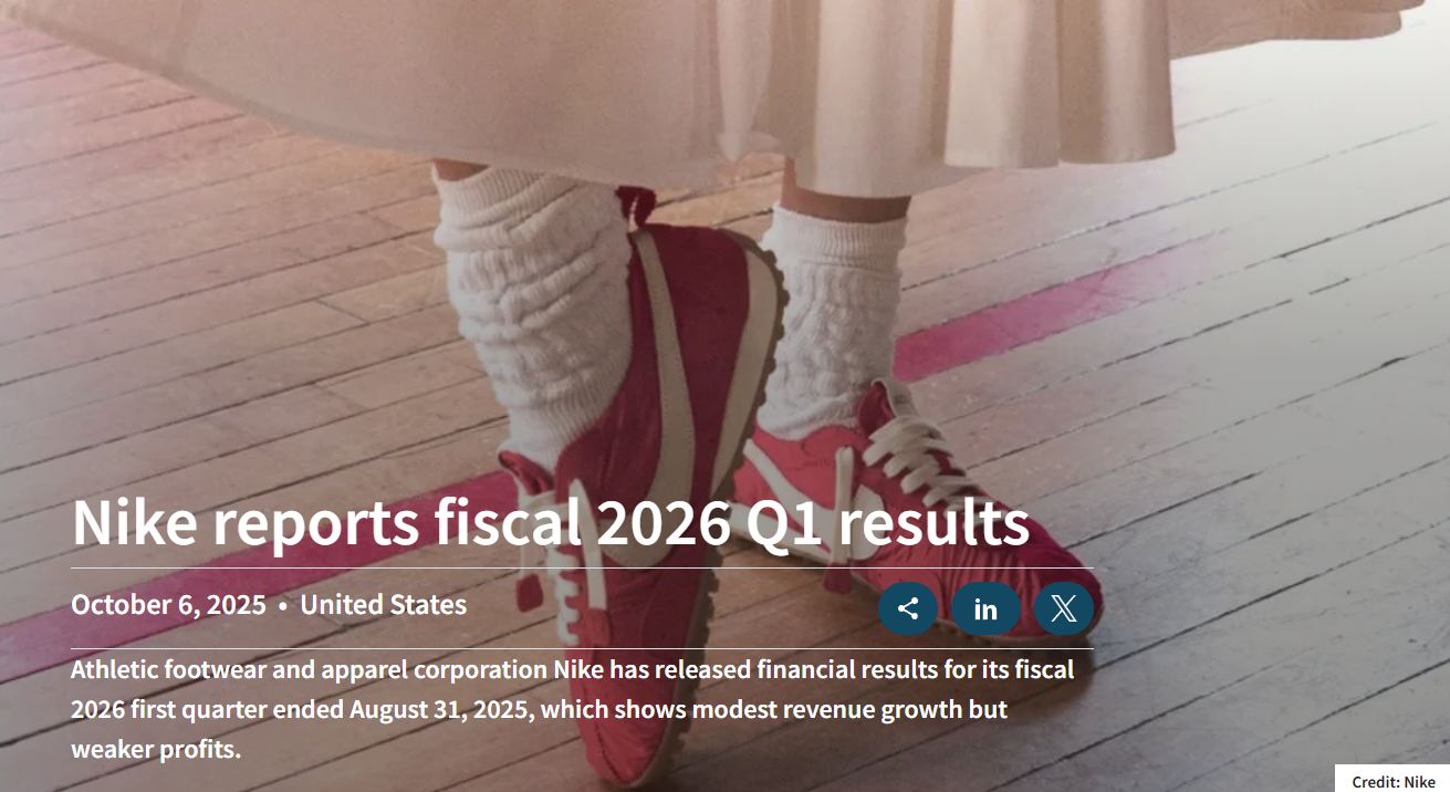 Nike’s revenues were up 1% at US$11.7 billion on a reported basis and down 1% on a currency-neutral basis. Nike Direct revenues were US$4.5 billion, down 4%, while wholesale revenues rose 7% to US$6.8 billion.