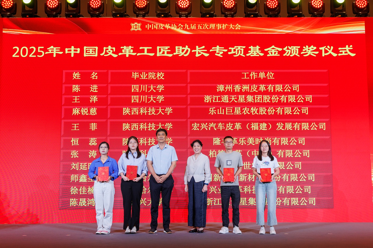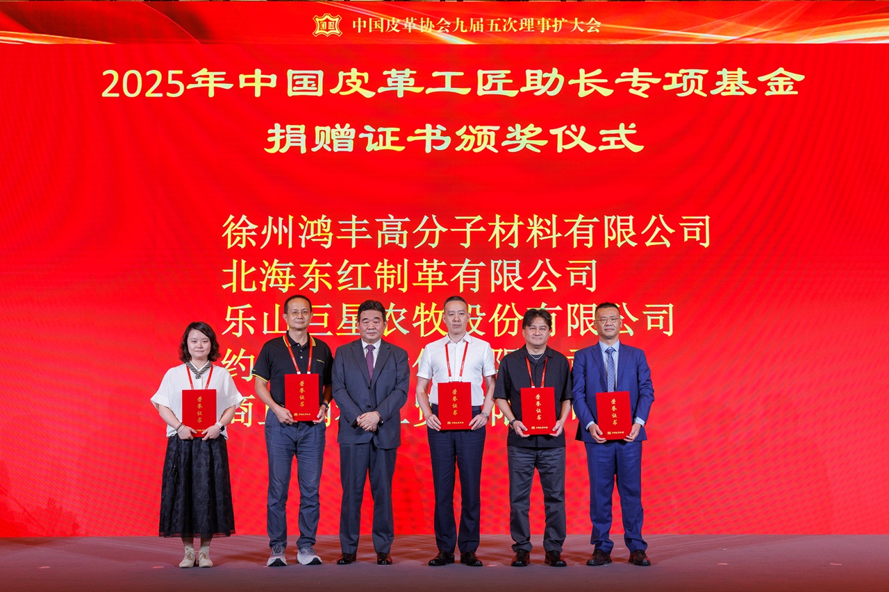 2025年9月1日,在中国皮革协会九届五次理事扩大会上,中国皮革协会副理事长、四川省皮革行业协会理事长、乐山巨星农牧股份有限公司总经理唐春祥宣读《关于发布2025年中国皮革工匠助长专项基金获奖者的公告》。内容如下:
