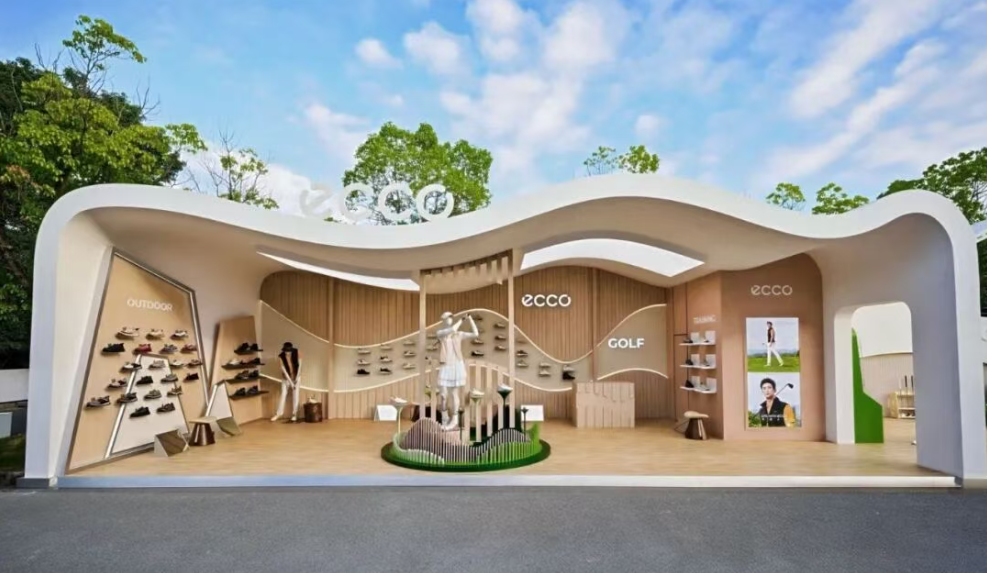 本次ECCO快闪空间外部轮廓以绵延不断的果岭地形为灵感,搭配北欧自然风格基调,呈现高尔夫、户外运动及日常训练三大区域,展示ECCO适配不同场景的多元产品矩阵。