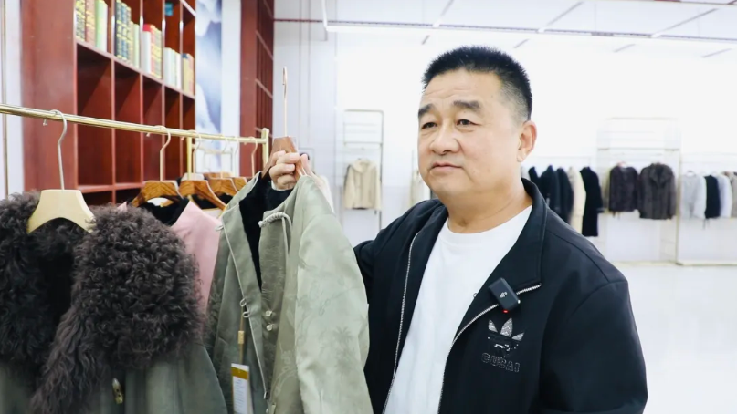 梦罗兰精品馆经理孙秋作说:“这是我们今年的主打款新中式皮毛外套,在传统剪裁工艺的基础上,特意在门襟处加装珍珠盘扣,就是要把大营裘皮的传统技艺和中式美学完美结合起来,还有全羊皮一体外套,我们非常期待博览会的到来。”