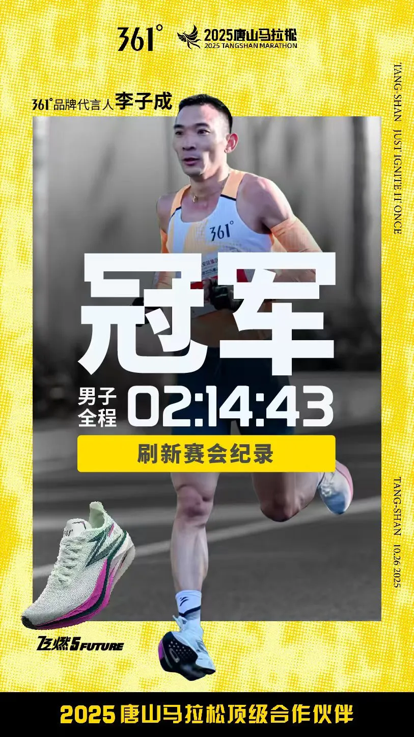10月26日,2025唐山马拉松正式鸣枪开跑。作为中国田协A1类金牌赛事,本届唐马吸引万余名跑者齐聚唐山,以奔跑致敬城市精神。中国领先的体育用品品牌361°作为赛事顶级合作伙伴,以专业装备与全方位服务为赛事保驾护航,其代言人与精英跑者表现卓越,一举包揽全程与半程马拉松的男、女子组四项冠军。品牌代言人李子成更是以02:14:43的成绩刷新男子赛事纪录,充分彰显361°在马拉松领域的科技实力与战略深耕。