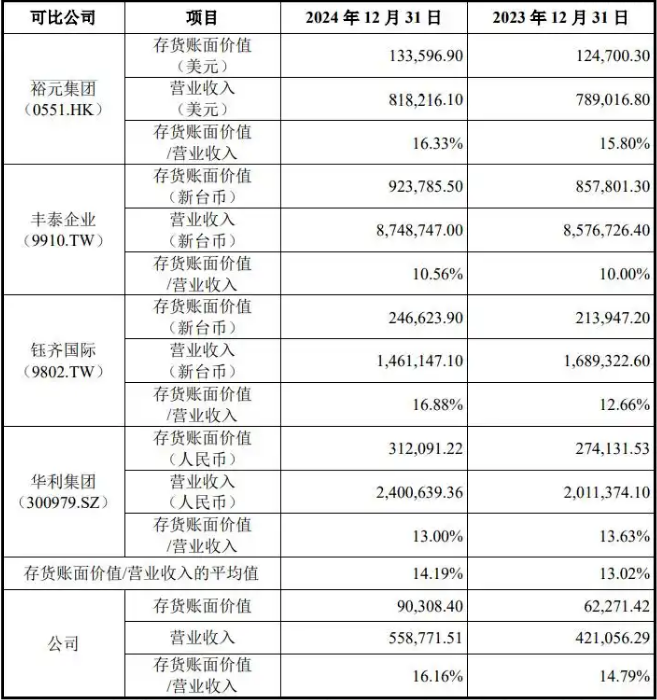 注:上述可比公司数据来源于公开披露的年度报告,裕元集团财务报表币种为美元,丰泰企业、钰齐国际财务报表币种为新台币(图源/网络,版权属于作者)。
