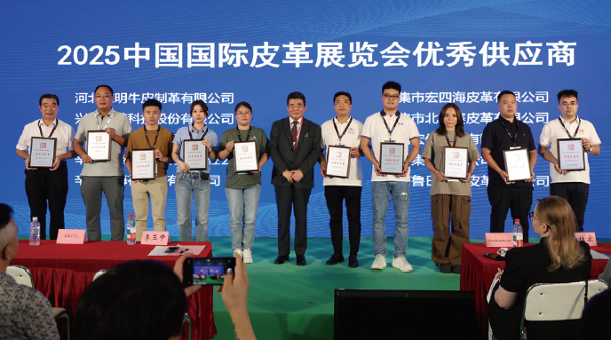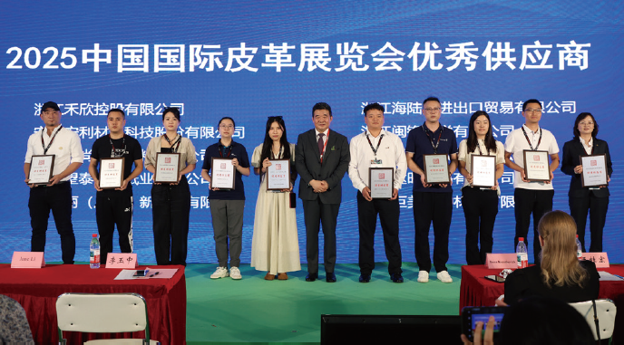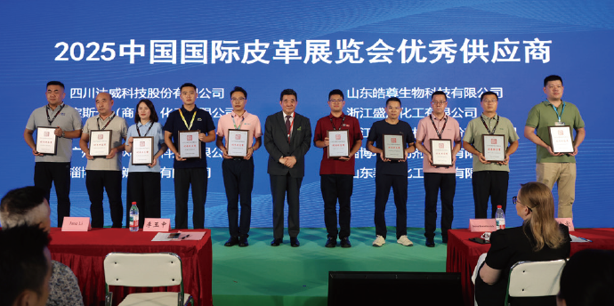 20多年来,中国国际皮革展览会主办方与广大参展商及合作伙伴携手并肩,共同绘制皮革行业的璀璨未来。这一盛会不仅是展示最新产品、技术与设计理念的绝佳平台,更是促进国内外皮革产业链上下游企业交流合作、共谋发展的重要桥梁。为感谢广大参展商的支持与厚爱,9月3日下午,中国国际皮革展览会主办方举行了2025中国国际皮革展览会优秀供应商颁奖典礼。