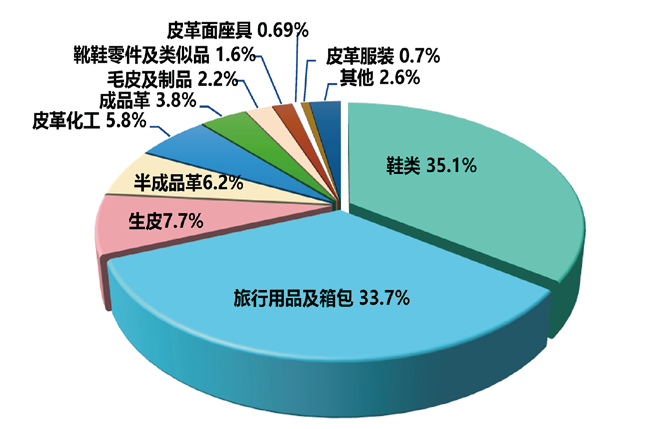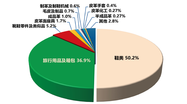 2025 年上半年全国皮革行业子行业出口额占比