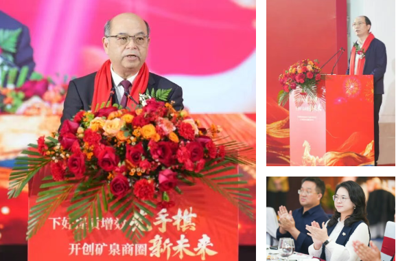 刘穗龙董事长在致辞中深情回顾了矿泉商会十年发展的风雨历程,强调商会始终坚守“服务会员、团结协作、共同发展”的核心宗旨,积极融入区域建设,搭建交流合作平台,推动商圈企业协同发展,这一切成就的取得,离不开各级政府的悉心指导与社会各界的鼎力支持。展望未来,他明确表示,商会将继续强化引领作用、深化服务效能,积极响应国家战略部署,而新濠畔集团将以自身产业优势为基石,全力推动2026矿泉“美妆小镇节”与“国际采购节”落地启动,为商户搭建更广阔的产销对接平台,助力商圈迭代升级与企业市场拓展,在区委区政府的领导下,携手全体同仁共促产业升级、共推区域经济高质量发展。值此新春佳节来临之际,刘董事长再次向全场嘉宾送上诚挚的新春祝福。