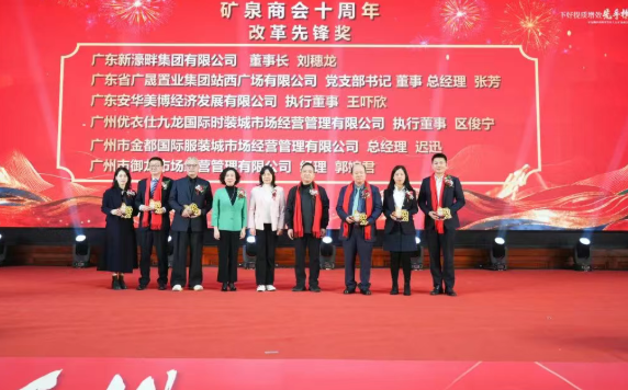 广东新濠畔集团董事长刘穗龙先生荣获“矿泉商会十周年改革先锋奖”,以表彰其在推动商圈改革创新、引领产业升级中的突出贡献。