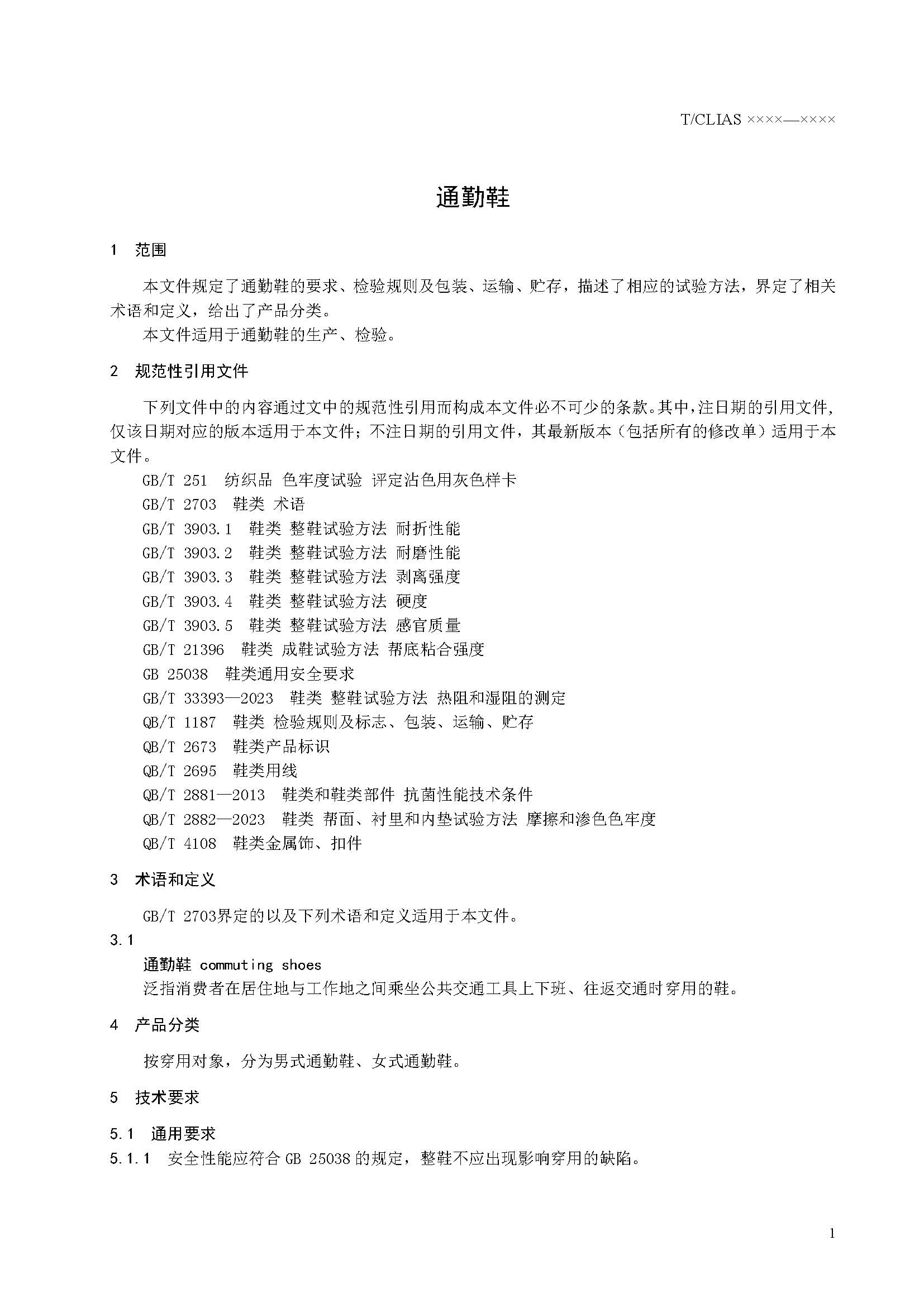 关于征求《通勤鞋》团体标准