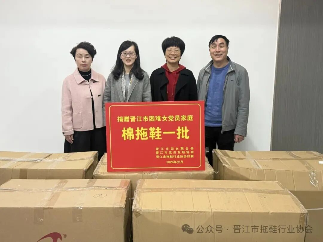 近日,晋江市拖鞋行业协会妇联积极响应晋江市妇联、晋江市党员互助协会号召,向我市困难女党员家庭捐赠了一批爱心棉拖鞋,以实际行动传递温情、践行公益。