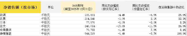 • 亚太地区的DTC渠道第四季度在韩国、中国和东南亚地区均实现了正增长(按固定汇率计算),批发渠道同比下降两位数。2025财年该地区净销售额按固定汇率计算,同比下降11.5%(按当前汇率计算下降15.6%),主要受批发业务下滑的影响。