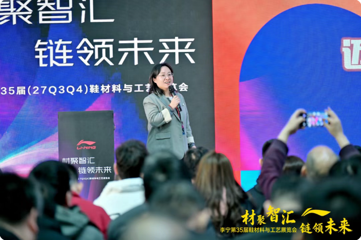 展会期间,中国皮革制鞋院科技研发中心主任庞晓燕博士分享《科技赋能 绿色共生——迈向零碳未来的实践路径》主题报告,聚焦行业绿色转型,系统阐述“新五化”指标要求,深入解读全生命周期评价在供应链协同降碳中的关键作用,为产业低碳发展提供专业指引。