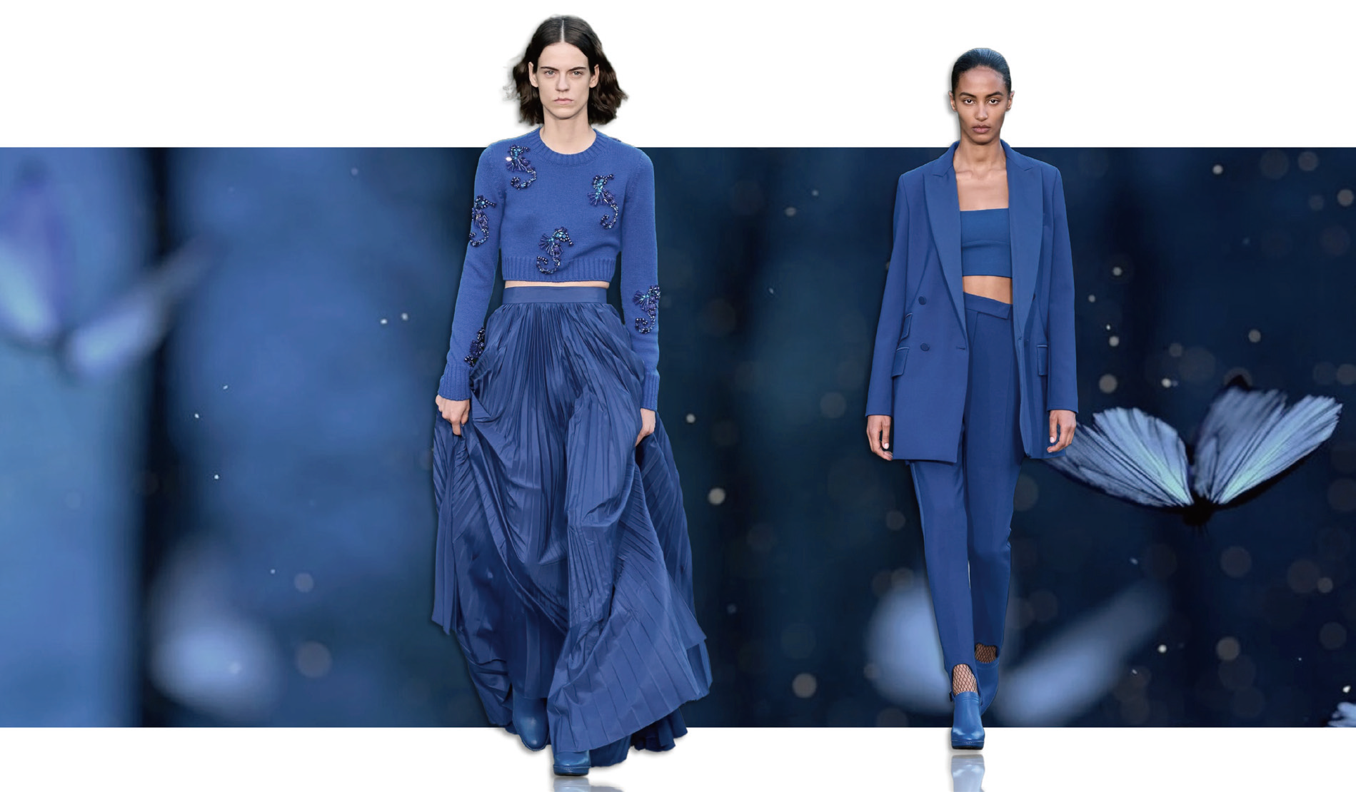 蝴蝶蓝色彩灵感源自自然界中蓝闪蝶身上梦幻的蓝色色调,它具备蓝色一贯给人的理性、寒冷的色彩印象,正符合当月泠冽的寒凉。同时色彩明度与彩度的中庸也为色彩赋予了怀旧、稳重的个性,有着自然深海般的宁静感受与回忆的深远意味。蝴蝶蓝色也极富神秘感,正如蝴蝶鳞粉在光线下可以折射出的丰富变化,该色彩也拥有闪烁与变幻的可能性,因而在艺术、设计等领域的使用中营造出独特的氛围和情感表达。(中国流行色协会趋势研究中心)