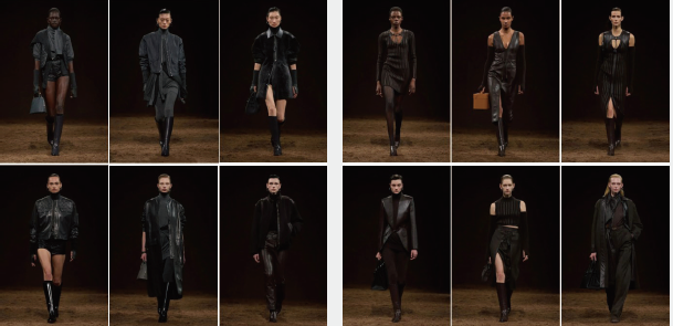 打破 “女性力量 = 中性化” 的刻板印象,通过皮革(力量象征)与曲线剪裁(女性特质)的结合,定义 “优雅且有力量” 的当代女性形象 —— 她们既可以穿着皮革夹克自在行动,也能以精致细节展现品味。