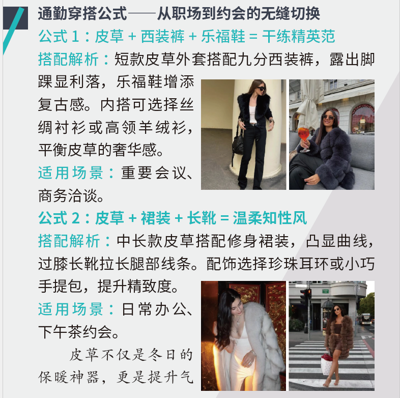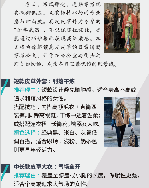 皮草造型解析——冬日通勤新风尚, 轻松拿捏职场气质