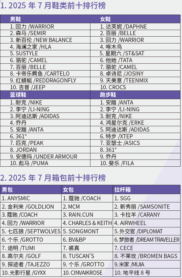 2025年7月商指针皮革行业线上零售榜