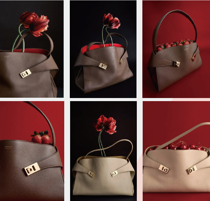 Ferragamo以爱意迎接情人节,浓情呈献经典Hug手袋系列大片“拥抱无处不在”。手袋之名“Hug”生动阐释其独到设计灵感:两侧系带包裹正面裁片,宛如正在深深拥抱。Hug手袋置于瞩目的红色与黑色背景当中,旁边伴随着鲜红的水果与花朵,塑就由双重元素构成的协调组合。