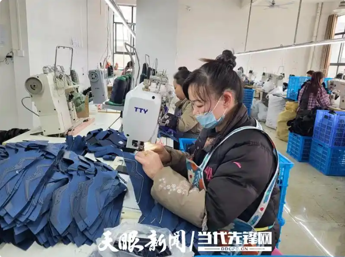 针车车间里,节奏更快。来自附近夜郎镇的工人王华均正全神贯注操作电动缝纫机,为鞋面安装拉链。只见他利索地将拉链对准位置,缝纫机针头飞速上下,“唰唰”几声,一条十多公分长的拉链便牢固地缝合到位,整个过程不过几秒。