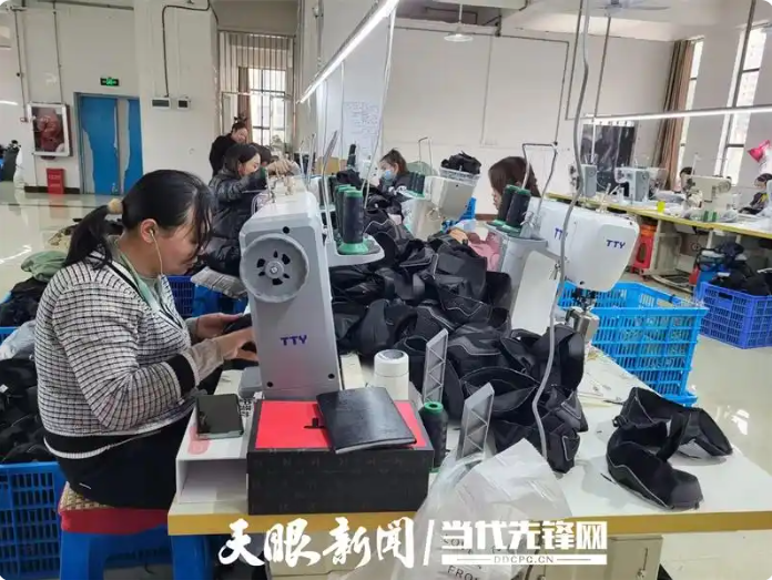 在忙碌的工人中,有一位来自易地搬迁安置点的肢体残疾女工刘某。她对能在“家门口”找到这份工作尤为珍惜:“每月收入超过3000元,我很满足。真的很感谢厂里给我这个机会。”星纯鞋业吸纳了多名搬迁群众和残疾人员工,为他们提供了融入社会、自食其力的平台。