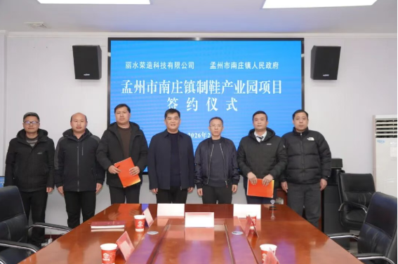 2月6日,孟州市南庄镇人民政府与浙江丽水荣造科技有限公司正式签约,标志着备受关注的孟州市南庄镇制鞋产业园项目正式进入实质性推进阶段,为南庄镇制鞋产业转型升级、壮大区域经济注入强劲动力。