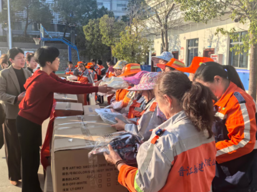 近日,晋江市妇联、内坑镇政府、晋江市拖鞋行业协会妇联联合开展公益捐赠活动,向坚守一线的环卫工人送上2000双爱心棉拖鞋,用点滴心意为“城市美容师”送上冬日温暖。