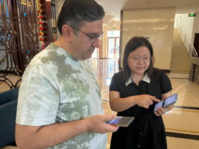 伊朗采购商在白沟新城了解箱包产品。 新华社记者 王美祺 摄